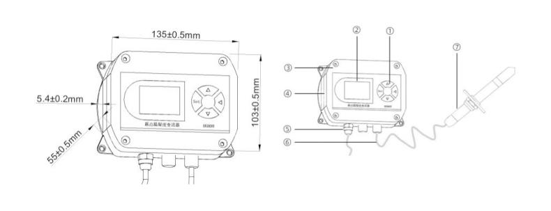 ●模擬量輸出:?溫度+濕度(露點值僅供參考)4~20mA/0-5V/0-10V(三選一)