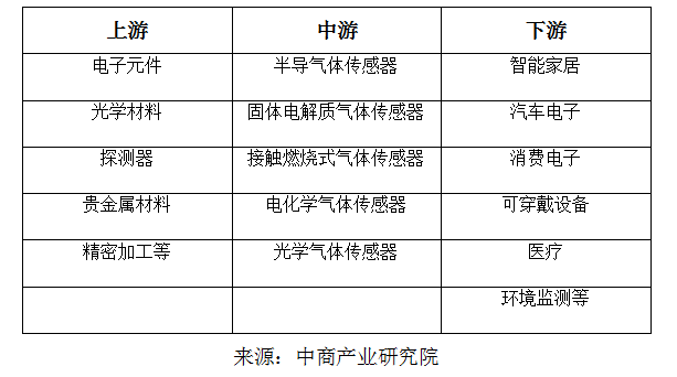 ? ? ? ?氣體傳感器行業(yè)的上游主要為電子元件、光學(xué)材料、探測(cè)器、貴金屬材料、精密加工等行業(yè)。電子元件等工業(yè)制成品行業(yè)處于高度競(jìng)爭(zhēng)狀態(tài),廠商眾多,競(jìng)爭(zhēng)激烈,產(chǎn)品普遍供大于求。